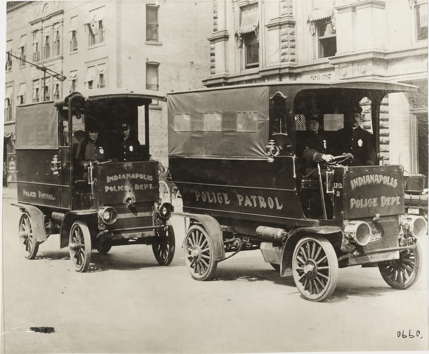 Favorite this☆ Indianapolis police in Rapid police vehicles Description: View of Indianapolis policemen in two Rapid trucks. "Indianapolis Police Dept., police patrol" painted on trucks. Typed on front: "Rapid vehicles, Indianapolis police patrol." Handwritten on back: "Motor trucks--Rapid." Details Resource ID: na009591 Subject: Trucks--Indiana--Indianapolis Police vehicles--Indiana--Indianapolis Rapid Motor Vehicle Company Police--Indiana--Indianapolis Photographic prints Date Issued: Unknown year Format: 1 photographic print ; 7.75 x 9.25 in. Member of: National Automotive History Collection Lazarnick Collection Filing Location: Motor trucks--Rapid #4 Rights: Physical rights are retained by DPL. Copyright is retained in accordance with U.S. copyright laws.