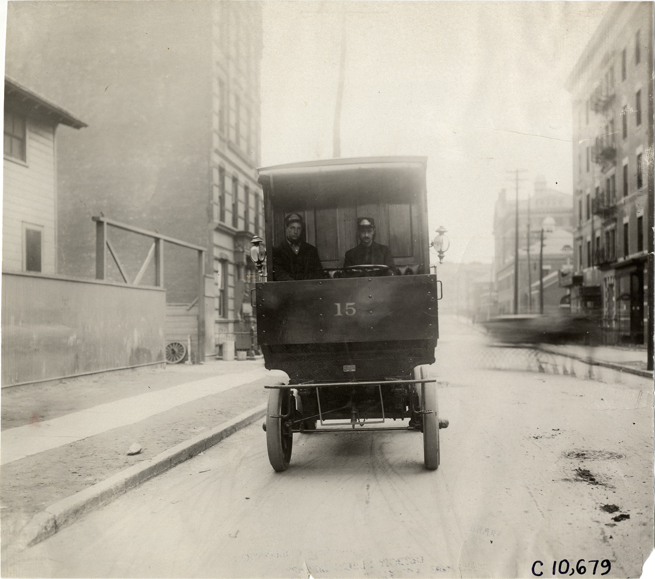 Driver and passenger in 1909 Studebaker truck