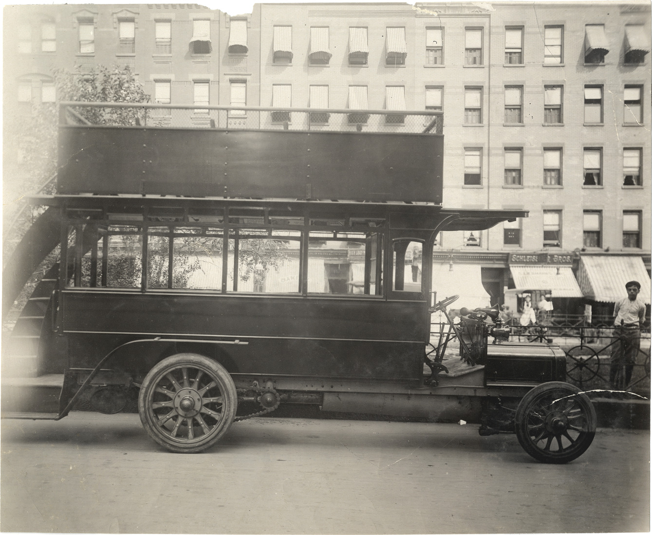 Favorite this☆ Double-decker bus Description: View of double-decker bus. Stamped on back: "Spooner & Wells, Inc., photographers, telephones 3472-3473 Columbus, 1931 Broadway, New York." Handwritten on back: "Motor trucks--Unidentified, 1908." Details Resource ID: na009630 Creator: Spooner & Wells Subject: Buses Photographers--New York (State)--New York Photographic prints Date Issued: 1908 Format: 1 photographic print ; 7.5 x 9 in. Member of: National Automotive History Collection Lazarnick Collection Filing Location: Motor trucks--Unidentified Rights: Physical rights are retained by DPL. Copyright is retained in accordance with U.S. copyright laws.