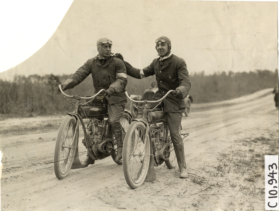 Two motorcyclists, 1909 New York Motorcycle Club spring run