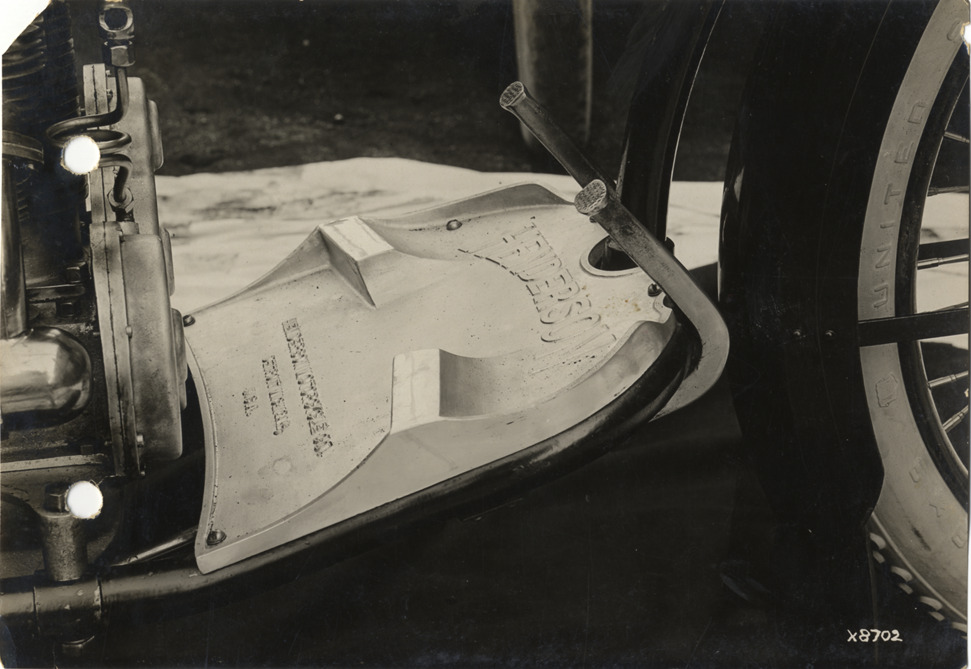Favorite this☆ Henderson motorcycle floorboard Description: Close-up view of Henderson motorcycle floorboard. "Henderson, Henderson Motorcycle Co., Detroit, Michigan, U.S.A." stamped on floorboard. Handwritten on back: "Motorcycles--Henderson. Photo taken for Henderson Motorcycle Co." Details Resource ID: na009968 Subject: Henderson motorcycle Photographic prints Date Issued: Unknown year Format: 1 photographic print ; 4.5 x 6.5 in. Member of: National Automotive History Collection Lazarnick Collection Filing Location: Motorcycles--Henderson Rights: Physical rights are retained by DPL. Copyright is retained in accordance with U.S. copyright laws.