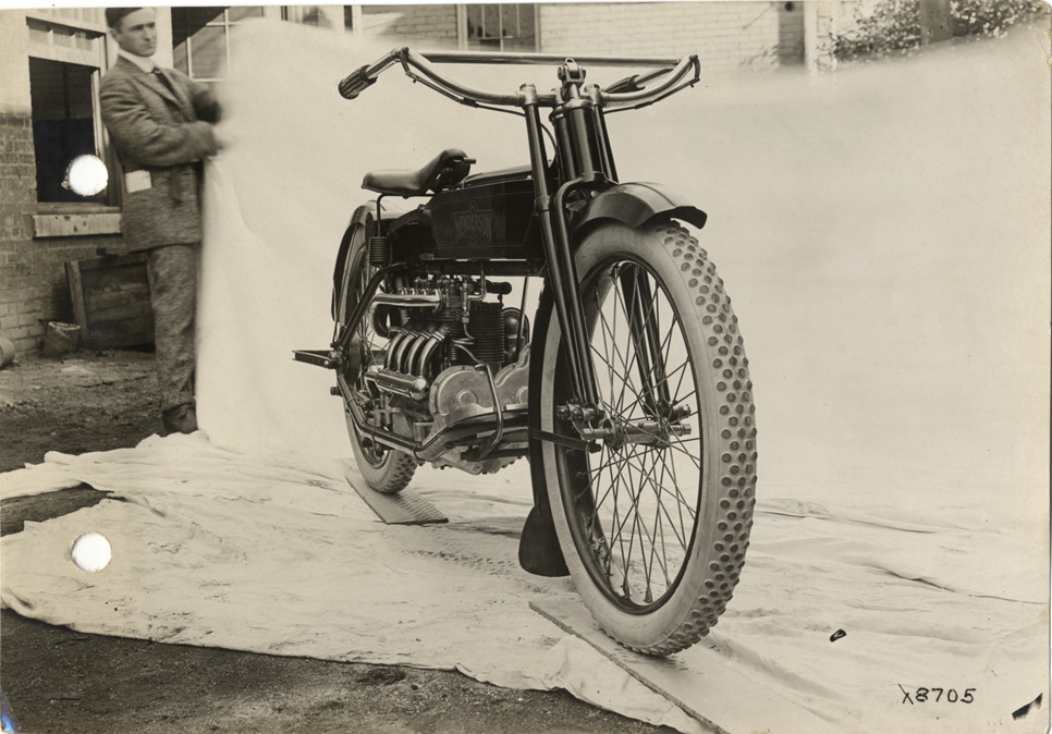 Favorite this☆ Henderson motorcycle Description: View of Henderson motorcycle in front of backdrop. Handwritten on back: "Motorcycles--Henderson. Photo taken for Henderson Motorcycle Co." Details Resource ID: na009970 Subject: Henderson motorcycle Photographic prints Date Issued: Unknown year Format: 1 photographic print ; 4.5 x 6.5 in. Member of: National Automotive History Collection Lazarnick Collection Filing Location: Motorcycles--Henderson Rights: Physical rights are retained by DPL. Copyright is retained in accordance with U.S. copyright laws.