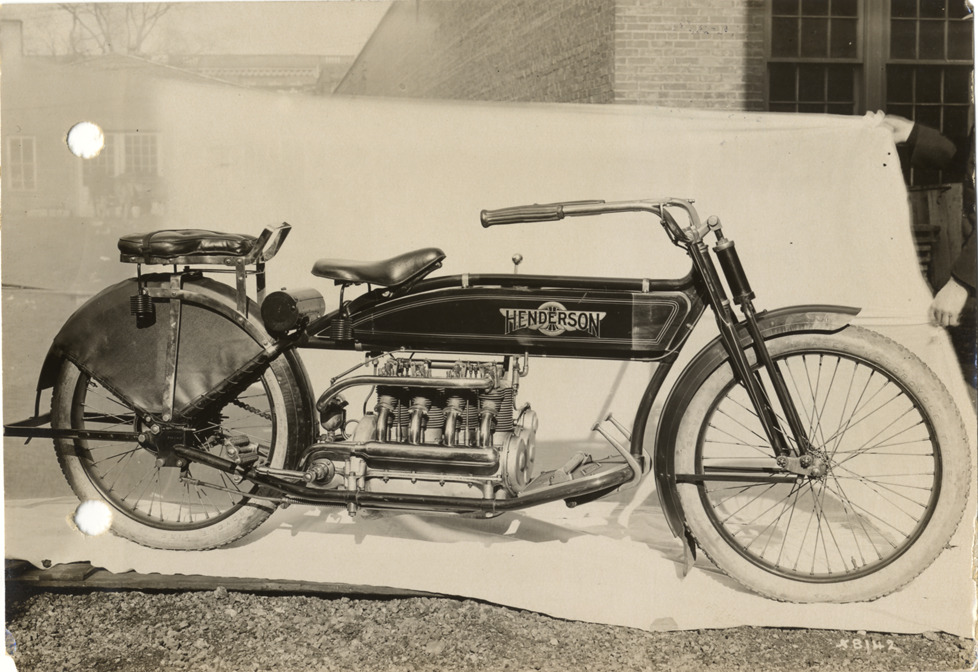 Favorite this☆ Henderson motorcycle Description: View of Henderson motorcycle in front of backdrop. Handwritten on back: "Motorcycles--Henderson. Taken for Henderson Motorcycle Co." Details Resource ID: na009972 Subject: Henderson motorcycle Photographic prints Date Issued: Unknown year Format: 1 photographic print ; 4.5 x 6.5 in. Member of: National Automotive History Collection Lazarnick Collection Filing Location: Motorcycles--Henderson Rights: Physical rights are retained by DPL. Copyright is retained in accordance with U.S. copyright laws.