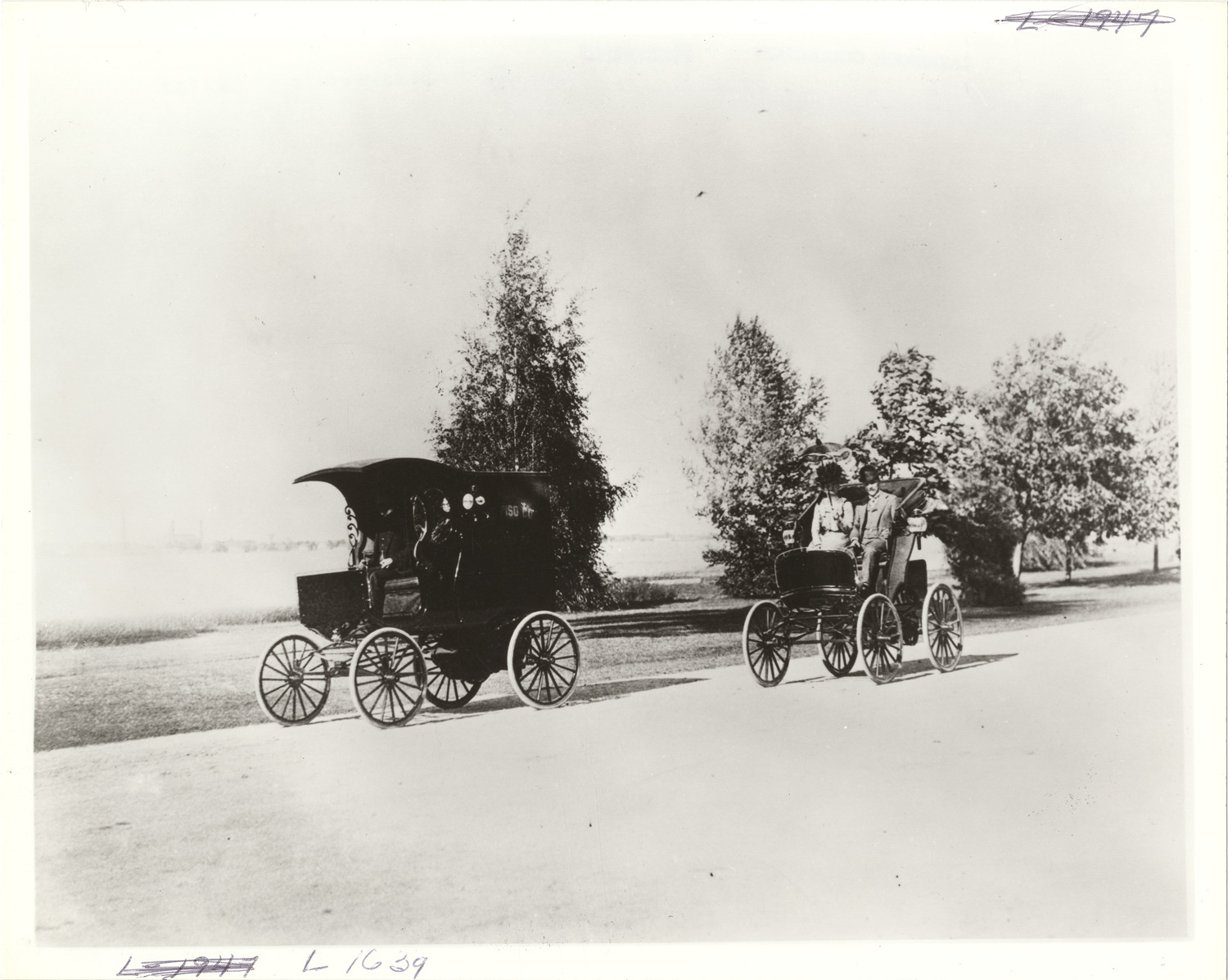 Favorite this☆ Motorists in Oldsmobile automobiles on Belle Isle Description: View of motorists in two Oldsmobile cars on Belle Isle. Handwritten on back: "Oldsmobile, Belle Isle, c.1900." Details Resource ID: na010008 Subject: Oldsmobile automobile Belle Isle Park (Detroit, Mich.) Photographic prints Date Issued: 1900 (year approximate) Format: 1 photographic print ; 8 x 10 in. Member of: National Automotive History Collection Lazarnick Collection Filing Location: Oldsmobile #2 Rights: Physical rights are retained by DPL. Copyright is retained in accordance with U.S. copyright laws.
