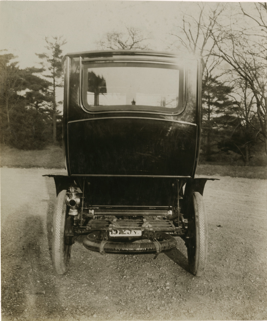 Rear view of 1906 Packard car. Stamped on back: "Photo by F. Ed. Spooner, 1536 B'way, telephone 6536-38th St., New York, N.Y." Handwritten on back: "Packard, 1906."