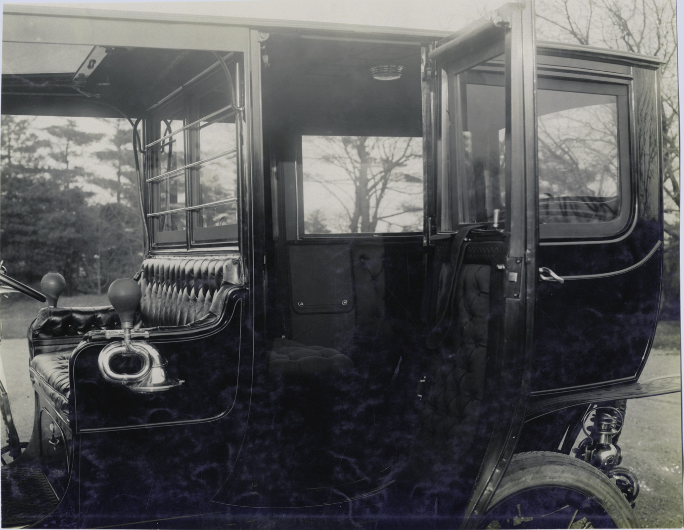 View of 1906 Packard car, showing front and rear seats. Stamped on back: "Photo by F. Ed. Spooner, 1536 B'way, telephone 6536-38th St., New York, N.Y." Handwritten on back: "Packard, 1906."
