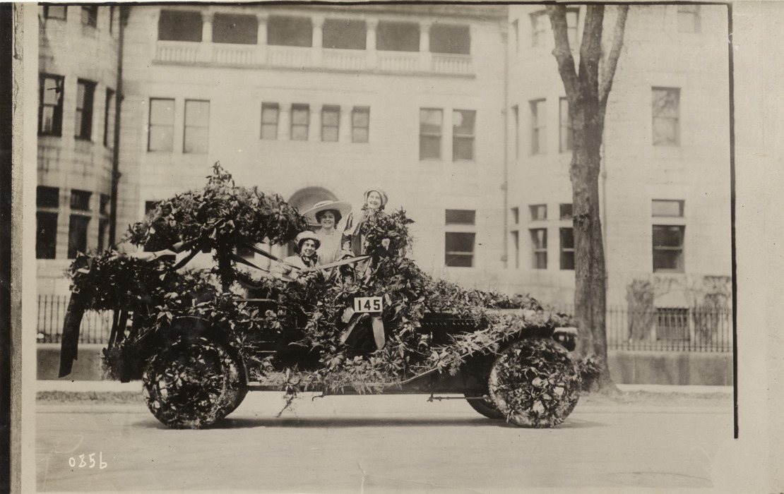 Winton automobile covered with floral decorations, 1910 Chicago floral parade