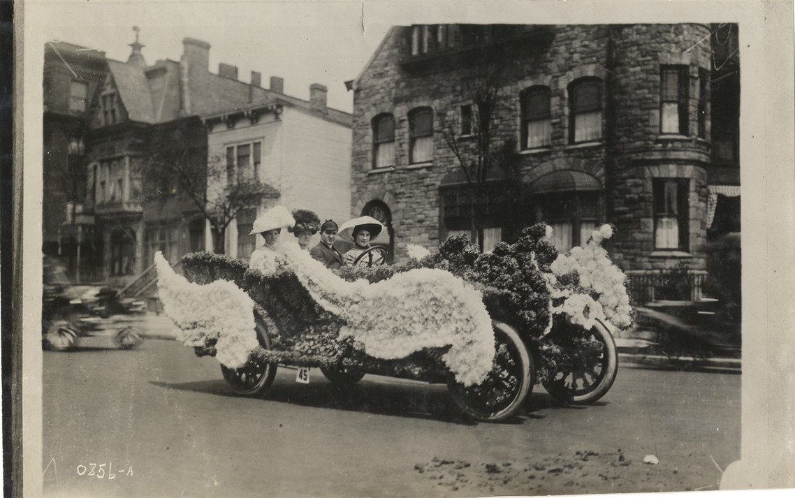 Favorite this☆ Automobile covered with floral decorations, 1910 Chicago floral parade Description: View of motorists in car covered with floral decorations in 1910 Chicago floral parade. Handwritten on back: "Parades--Chicago floral parade, 1910." Details Resource ID: na010166 Subject: Automobiles--Illinois--Chicago Floral decorations--Illinois--Chicago Parades--Illinois--Chicago Photographic prints Date Issued: 1910-05 Format: 1 photographic print ; 4.75 x 7.75 in. Member of: National Automotive History Collection Lazarnick Collection Filing Location: Parades--Chicago floral parade, 1910 Rights: Physical rights are retained by DPL. Copyright is retained in accordance with U.S. copyright laws.