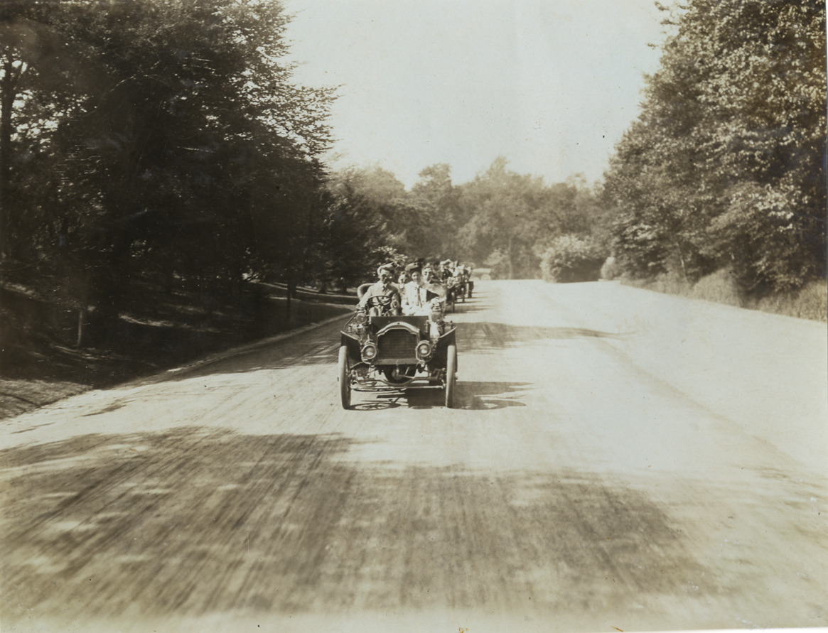 Motorists driving automobiles, 1906 Long Island Automobile Club parade