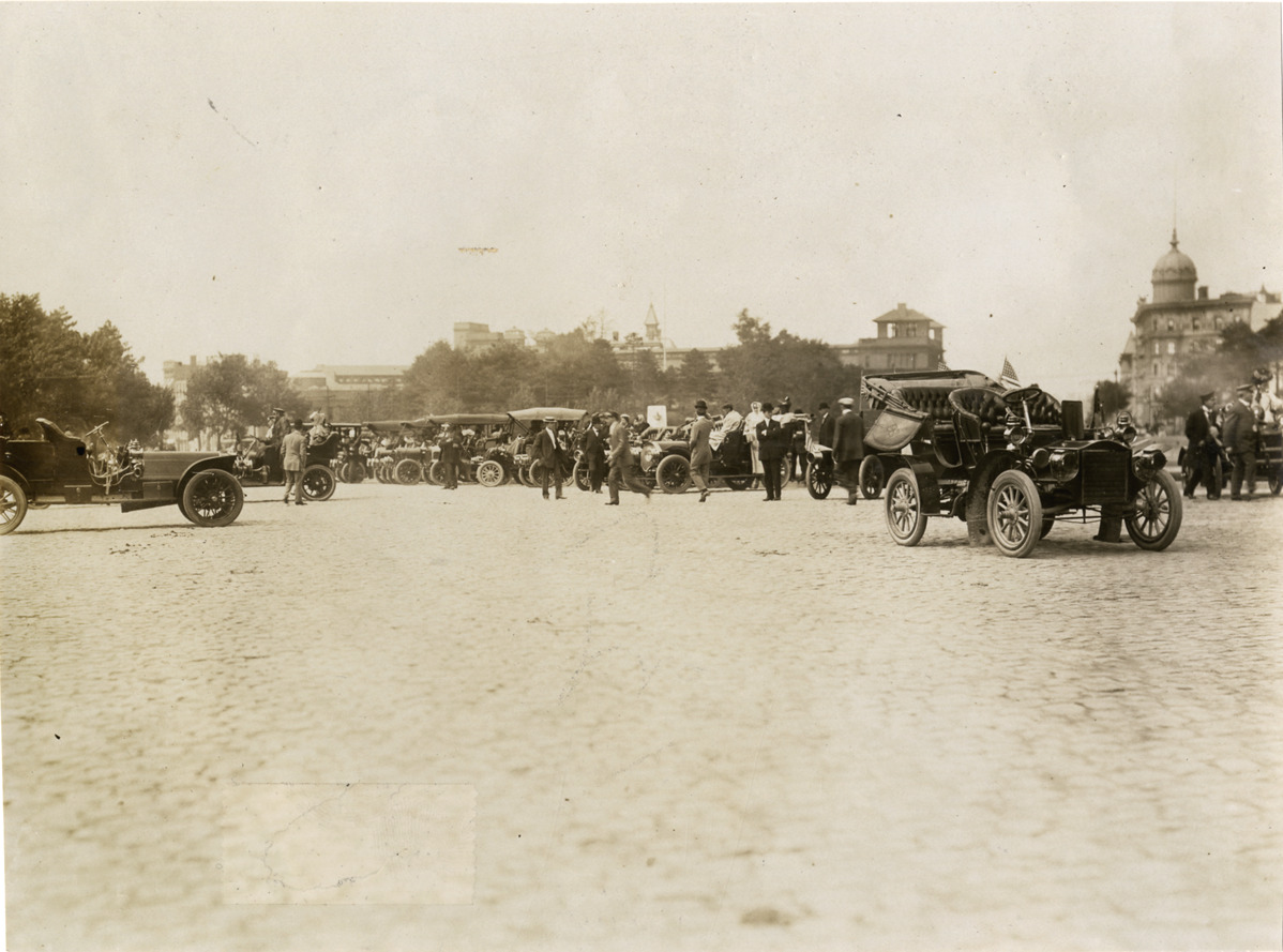 Motorists with automobiles, 1906 Long Island Automobile Club parade