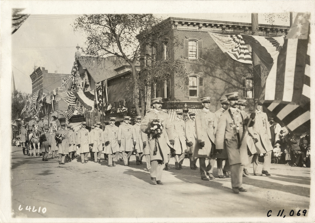 Firemen marching in formation, 1910 parade in New Rochelle, New York