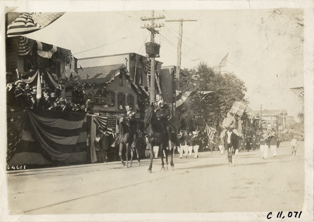 Men on horseback, 1910 parade in New Rochelle, New York