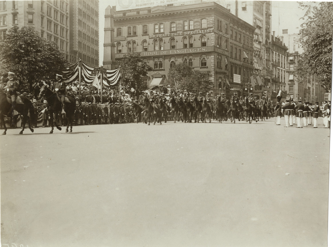 Favorite this☆ Mounted police, 1906 New York policeman's parade Description: View of mounted police passing in front of reviewing stand during 1906 parade honoring New York Police Department. Handwritten on back: "Parades--New York policeman's parade, 1906." Details Resource ID: na010354 Subject: Mounted police--New York (State)--New York Police horses--New York (State)--New York New York (N.Y.). Police Dept. Parades--New York (State)--New York Photographic prints Date Issued: 1906-06-02 Format: 1 photographic print ; 5.75 x 7.75 in. Member of: National Automotive History Collection Lazarnick Collection Filing Location: Parades--New York policeman's parade, 1906 Rights: Physical rights are retained by DPL. Copyright is retained in accordance with U.S. copyright laws.