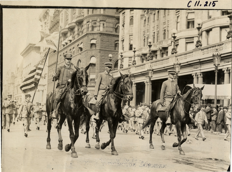 Men on horseback, 1909 New York street cleaners parade