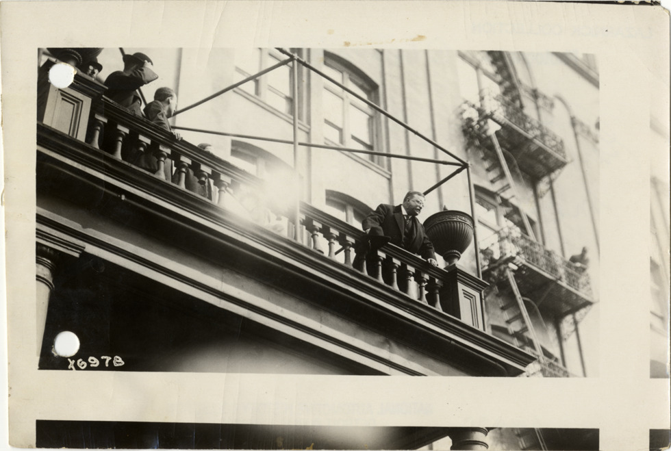 William Howard Taft making speech from balcony of Cadillac Hotel