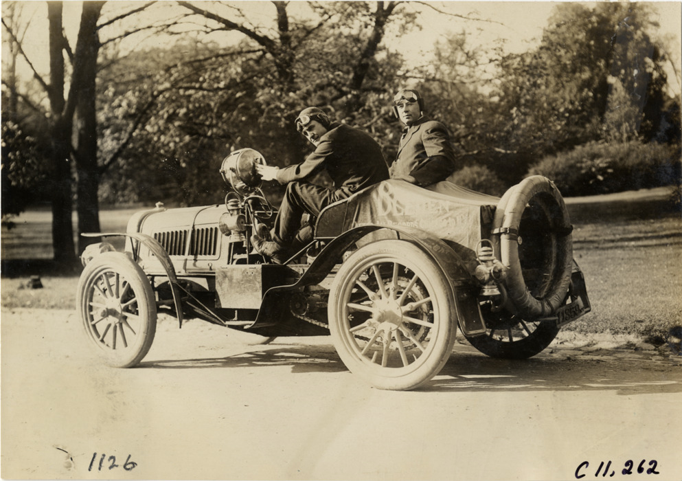 Driver and passenger in 1904 Pope-Toledo racecar