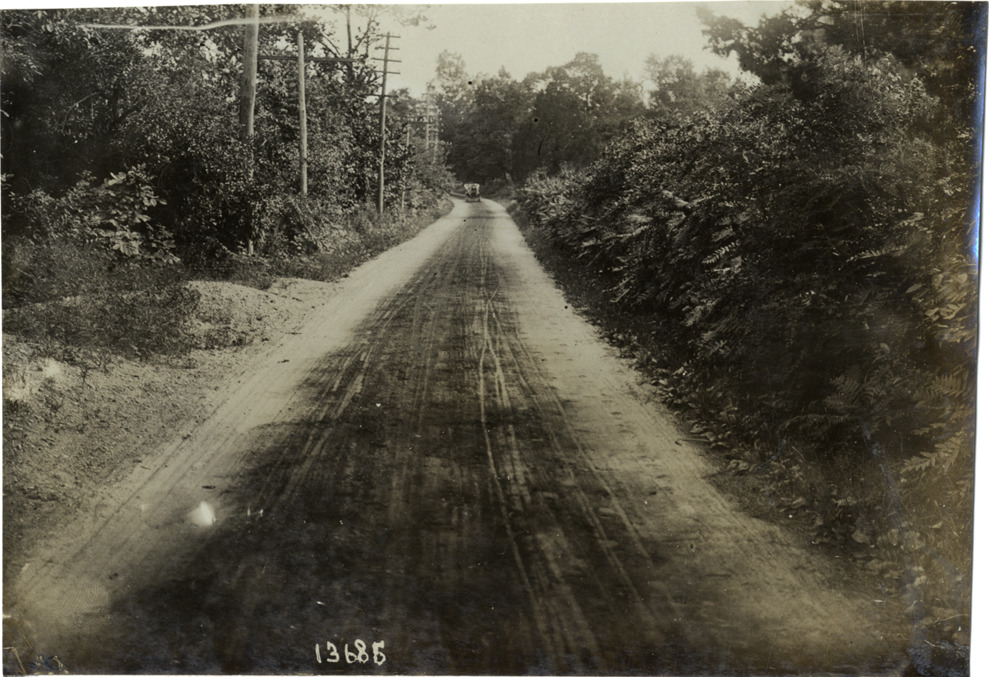 Automobile traveling on rural road, 1906 Vanderbilt Cup race course