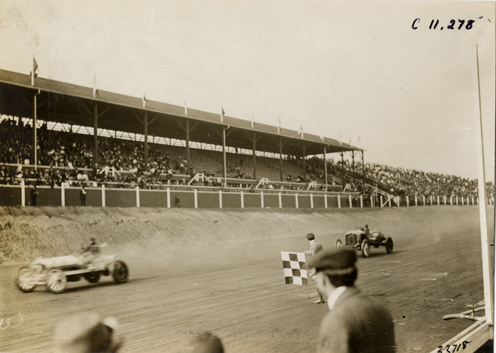 Favorite this☆ Racecars crossing finish line, Atlanta Speedway Description: View of racecars crossing finish line during race at Atlanta Speedway in Georgia. Official waves checkered flag; grandstand in background. Handwritten on back: "Races and racing--Atlanta Speedway races, 1909." Details Resource ID: na010670 Subject: Automobiles, Racing--Georgia--Atlanta Grandstands--Georgia--Atlanta Racetracks (Automobile racing)--Georgia--Atlanta Automobile racing--Georgia--Atlanta Photographic prints Date Issued: 1909 Format: 1 photographic print ; 4.75 x 6.5 in. Member of: National Automotive History Collection Lazarnick Collection Filing Location: Races and racing--Atlanta Speedway races, 1909 #1 Negative Number: Negative #C11,278 Rights: Physical rights are retained by DPL. Copyright is retained in accordance with U.S. copyright laws.