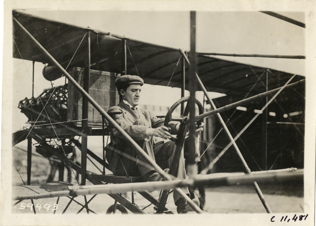 Aviator in biplane, Atlanta Speedway