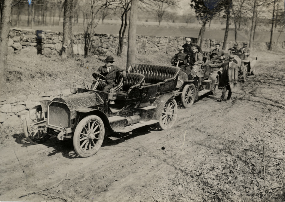 Motorists with automobiles, 1908 Briarcliff Trophy Race