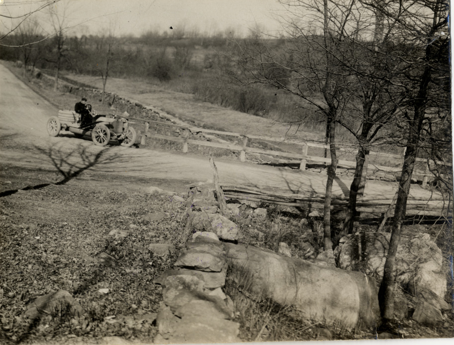 Motorist traveling on racecourse, 1908 Briarcliff Trophy Race