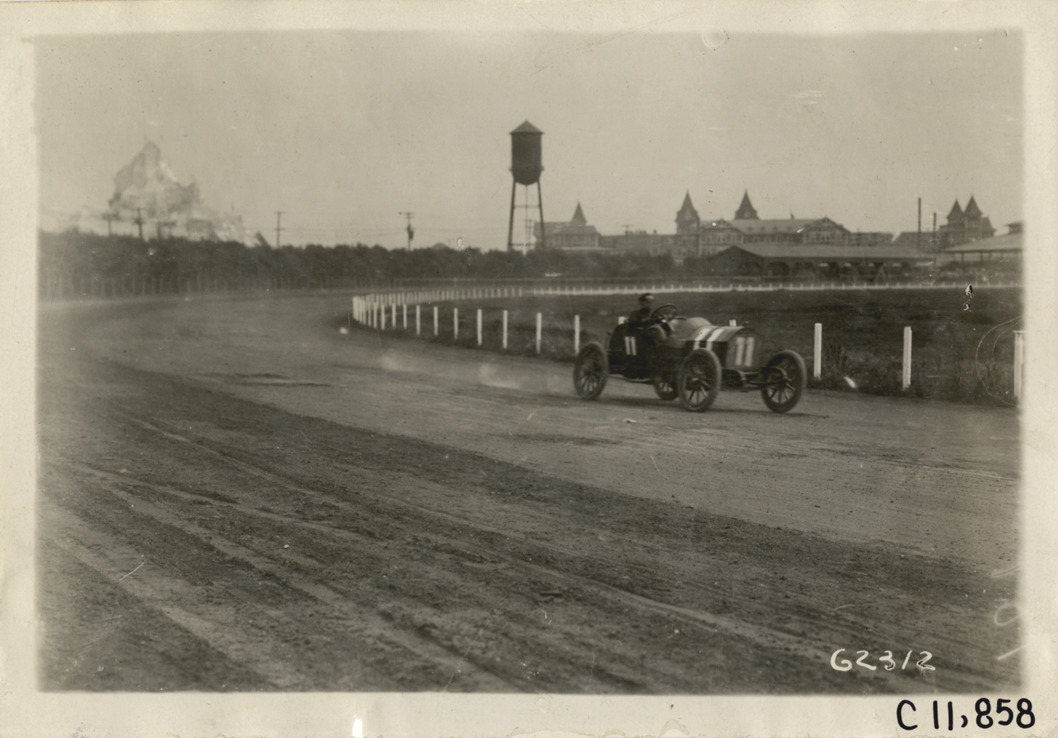 Joe Taylor driving Correja racecar, 1910 Brighton Beach races