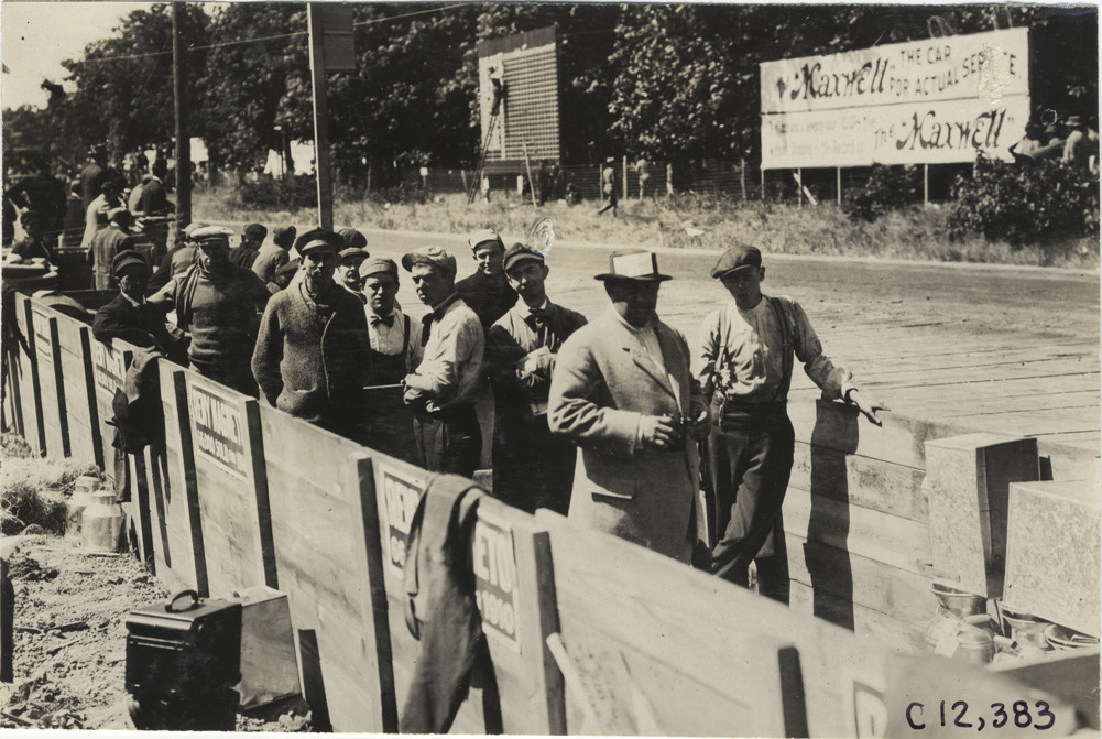 Favorite this☆ Pit crews, 1909 Crown Point races Description: View of pit crews during the 1909 Crown Point races in Indiana. Sign advertising Maxwell cars in background. Handwritten on back: "Crown Point. Races and racing--Crown Point races, 1909." Details Resource ID: na011935 Subject: Pit crews--Indiana Automobile racing--Indiana Photographic prints Date Issued: 1909-06 Format: 1 photographic print ; 4.5 x 6.75 in. Member of: National Automotive History Collection Lazarnick Collection Filing Location: Races and racing--Crown Point races, 1909 #12 Negative Number: Negative #C12,383 Rights: Physical rights are retained by DPL. Copyright is retained in accordance with U.S. copyright laws.