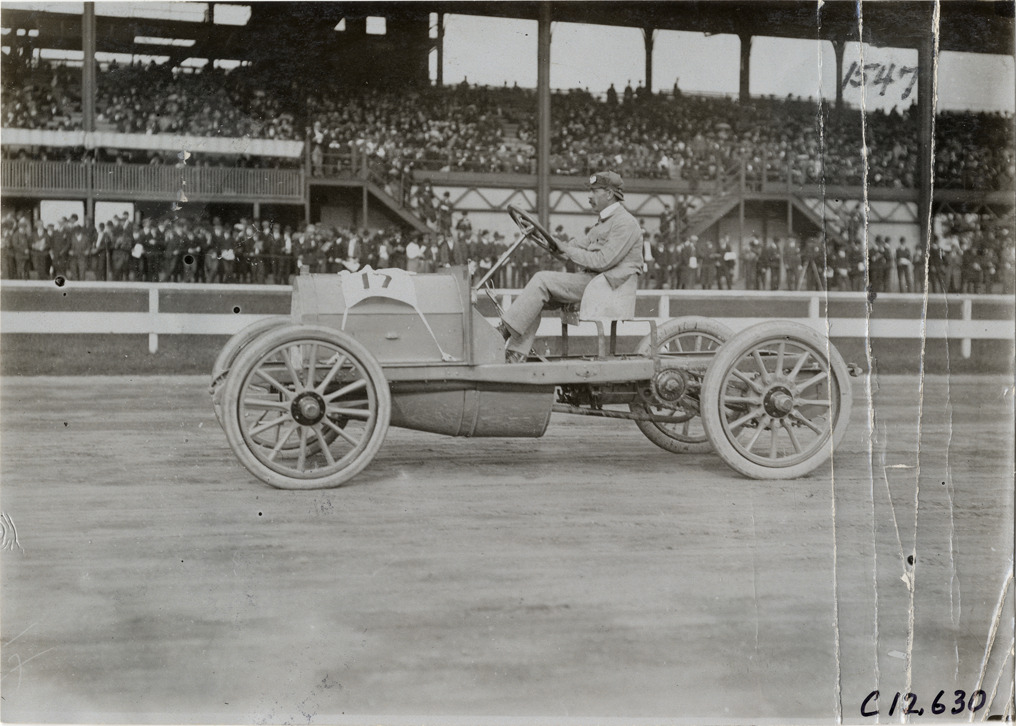Driver in racecar, 1904 Empire City races