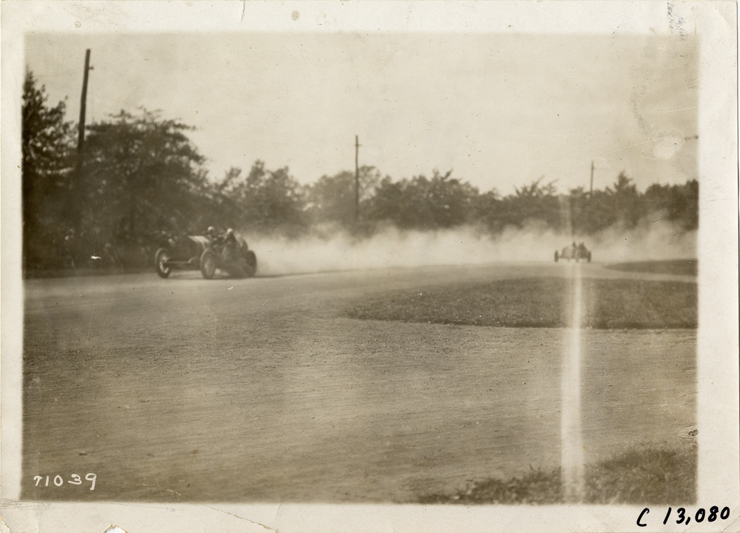 Donald Herr driving National racecar in automobile race, 1911 Fairmount Park races