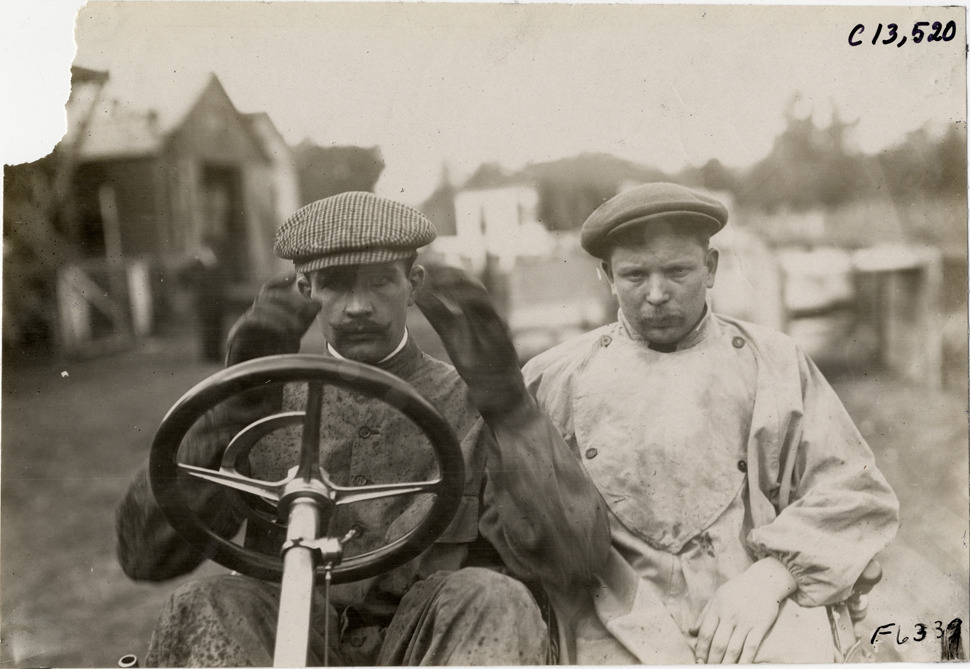 Favorite this☆ Driver and passenger in racecar, 1908 Grand Prize races Description: Close-up view of driver and passenger in racecar during the 1908 Grand Prize races in Savannah, Georgia. Handwritten on back: "Races and racing--Grand Prize races, 1908." Details Resource ID: na012850 Subject: Automobile racing drivers--Georgia--Savannah Automobile racing--Georgia--Savannah Photographic prints Date Issued: 1908 Format: 1 photographic print ; 4.5 x 6.5 in. Member of: National Automotive History Collection Lazarnick Collection Filing Location: Races and racing--Grand Prize Races, 1908 #12 Negative Number: Negative #C13,520 Rights: Physical rights are retained by DPL. Copyright is retained in accordance with U.S. copyright laws.
