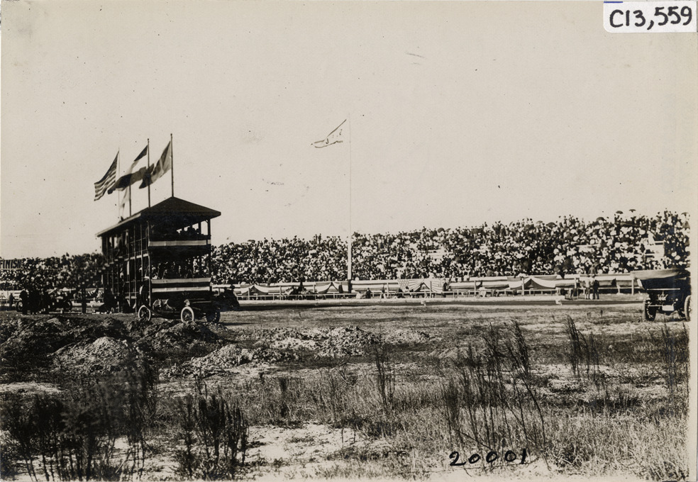 Favorite this☆ Grandstand and press box, 1908 Grand Prize races Description: View of racetrack with press box and crowds in grandstand during the 1908 Grand Prize races in Savannah, Georgia. Handwritten on back: "Races and racing--Grand Prize races, 1908." Details Resource ID: na012881 Subject: Racetracks (Automobile racing)--Georgia--Savannah Automobile racing--Georgia--Savannah Photographic prints Date Issued: 1908 Format: 1 photographic print ; 4.75 x 6.5 in. Member of: National Automotive History Collection Lazarnick Collection Filing Location: Races and racing--Grand Prize Races, 1908 #13 Negative Number: Negative #C13,559 Rights: Physical rights are retained by DPL. Copyright is retained in accordance with U.S. copyright laws.