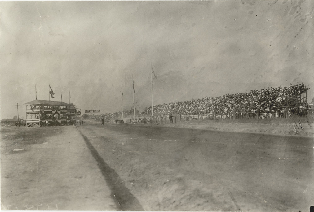 Favorite this☆ Racetrack, 1908 Grand Prize races Description: Distant view of racetrack with grandstand and press box during the 1908 Grand Prize races in Savannah, Georgia. Handwritten on back: "Remind you of Vanderbilt. Races and racing--Grand Prize races, 1908." Details Resource ID: na012970 Subject: Racetracks (Automobile racing)--Georgia--Savannah Automobile racing--Georgia--Savannah Photographic prints Date Issued: 1908 Format: 1 photographic print ; 4.5 x 6.75 in. Member of: National Automotive History Collection Lazarnick Collection Filing Location: Races and racing--Grand Prize Races, 1908 #16 Rights: Physical rights are retained by DPL. Copyright is retained in accordance with U.S. copyright laws.