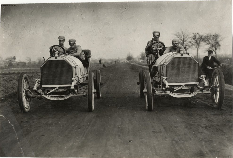 L.B. Lorimer and Boulger in Thomas-Detroit racecars, 1908 Grand Prize races