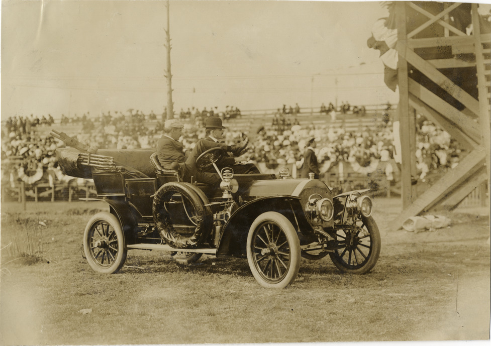 Favorite this☆ Physician in automobile, 1908 Grand Prize races Description: View of doctor and unidentified man in car during the 1908 Grand Prize races in Savannah, Georgia. Grandstand in background. Handwritten on back: "The doctor. Races and racing--Grand Prize races, 1908." Details Resource ID: na013425 Subject: Physicians--Georgia--Savannah Automobiles--Georgia--Savannah Automobile racing--Georgia--Savannah Photographic prints Date Issued: 1908 Format: 1 photographic print ; 4.75 x 6.5 in. Member of: National Automotive History Collection Lazarnick Collection Filing Location: Races and racing--Grand Prize Races, 1908 #35 Rights: Physical rights are retained by DPL. Copyright is retained in accordance with U.S. copyright laws.