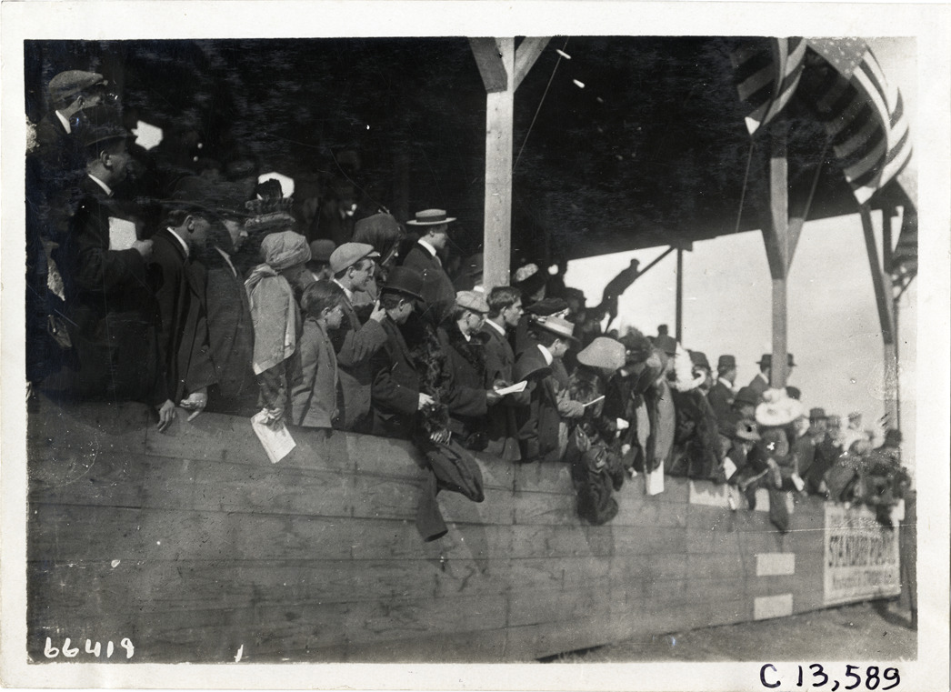 Spectators in grandstand, 1910 Guttenberg races