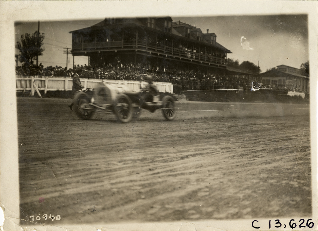 Driver in racecar, 1911 Guttenberg races