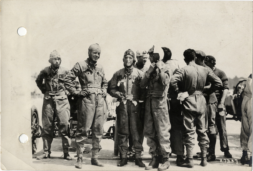 Mason drivers and crew, 1913 Indianapolis 500 automobile race