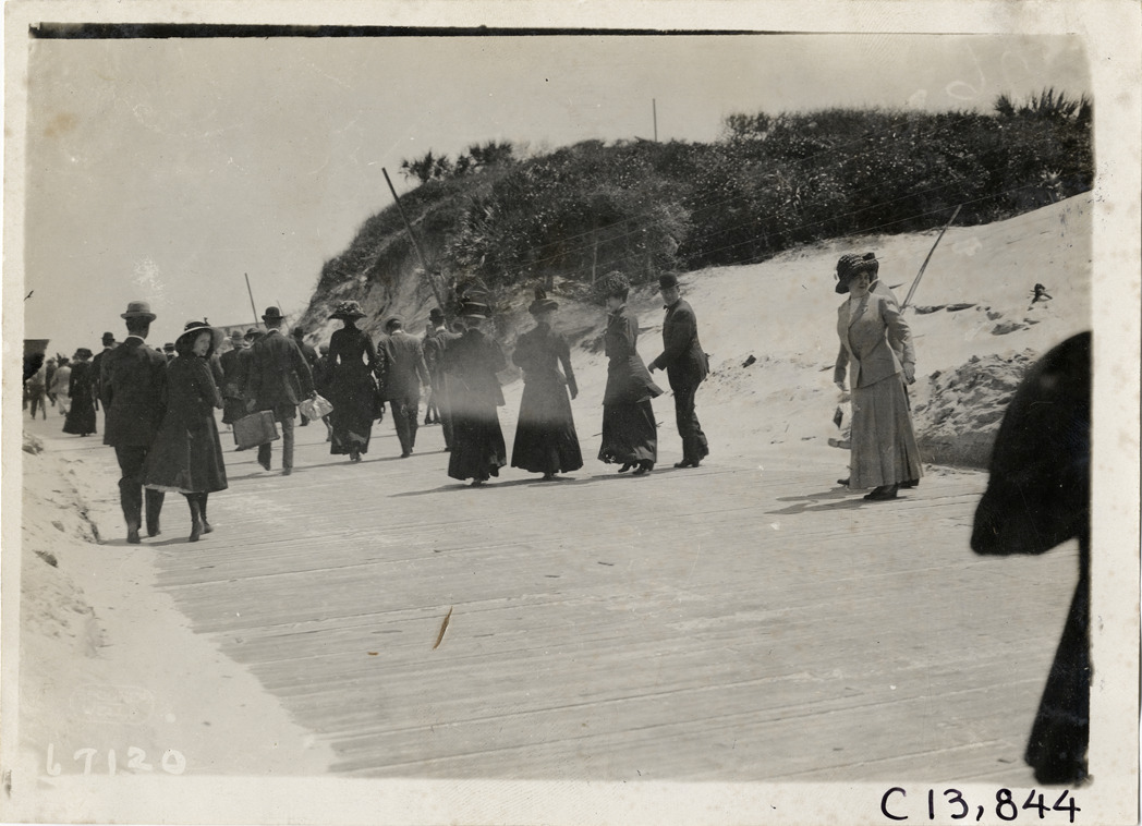 Spectators walking along boardwalk, 1911 Jacksonville automobile races