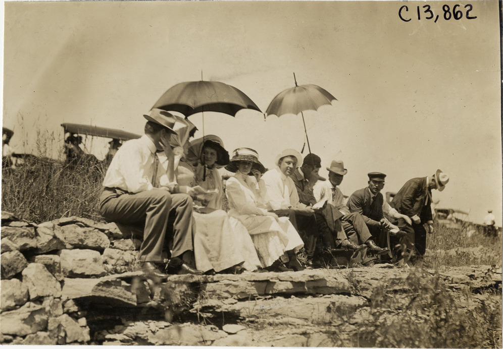 Favorite this☆ Spectators, 1909 Kansas City auto races Description: View of men and women on side of track during the 1909 automobile races at the Elm Ridge racetrack in Kansas City, Missouri. Two spectators hold parasols. Handwritten on back: "Spectators, 7/31/09. Races and racing--Kansas City auto races, 1909." Details Resource ID: na014068 Subject: Automobile racing fans--Missouri--Kansas City Parasols--Missouri--Kansas City Racetracks (Automobile racing)--Missouri--Kansas City Automobile racing--Missouri--Kansas City Photographic prints Date Issued: 1909-07-31 Format: 1 photographic print ; 4.5 x 6.75 in. Member of: National Automotive History Collection Lazarnick Collection Filing Location: Races and racing--Kansas City auto races, 1909 Negative Number: Negative #C13,862 Rights: Physical rights are retained by DPL. Copyright is retained in accordance with U.S. copyright laws.