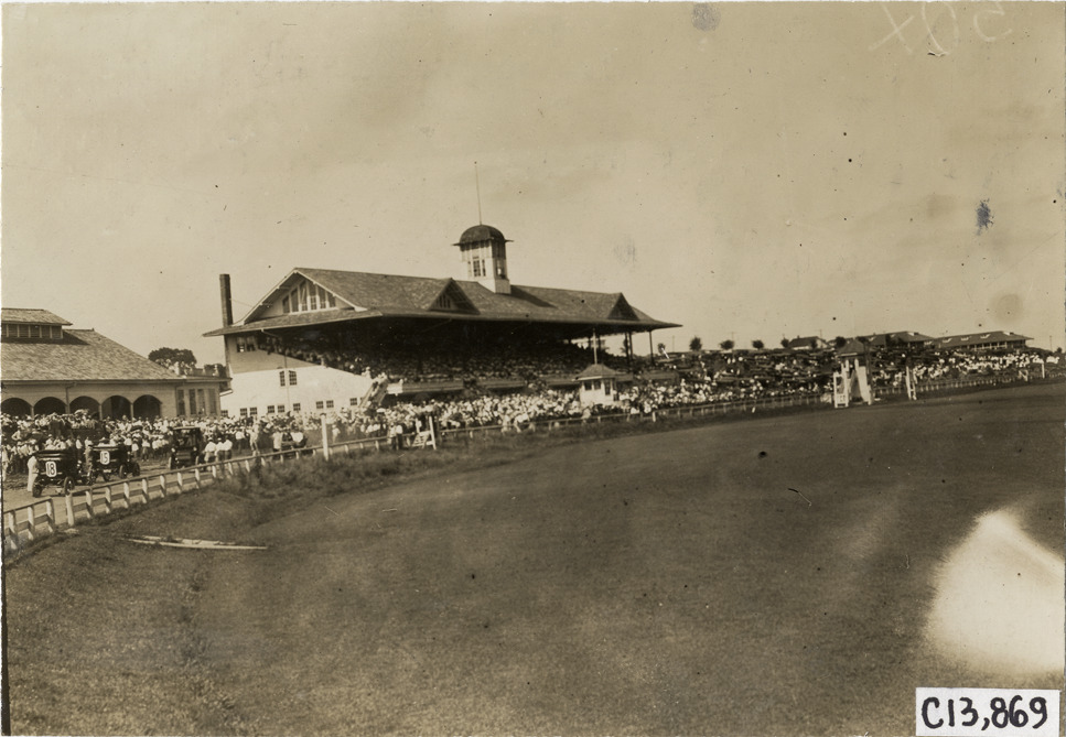 Favorite this☆ Grandstand, 1909 Kansas City auto races Description: View of grandstand during the 1909 automobile races at the Elm Ridge racetrack in Kansas City, Missouri. Handwritten on back: "View of the grandstand, 7/31/09. Races and racing--Kansas City auto races, 1909." Details Resource ID: na014075 Subject: Grandstands--Missouri--Kansas City Racetracks (Automobile racing)--Missouri--Kansas City Automobile racing--Missouri--Kansas City Photographic prints Date Issued: 1909-07-31 Format: 1 photographic print ; 4.5 x 6.5 in. Member of: National Automotive History Collection Lazarnick Collection Filing Location: Races and racing--Kansas City auto races, 1909 Negative Number: Negative #C13,869 Rights: Physical rights are retained by DPL. Copyright is retained in accordance with U.S. copyright laws.