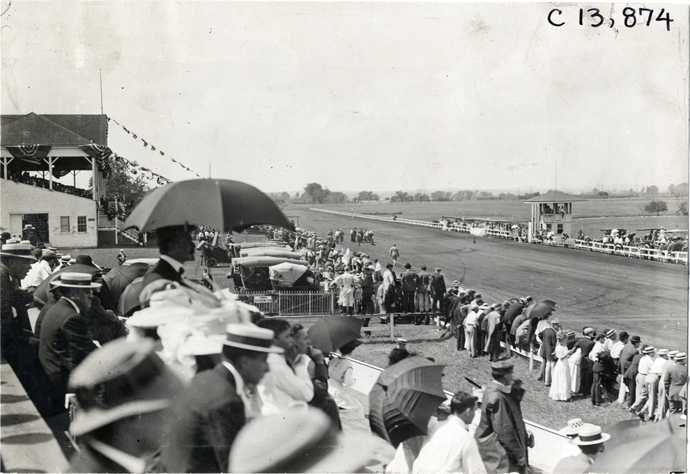View of racetrack, 1908 Long Branch races