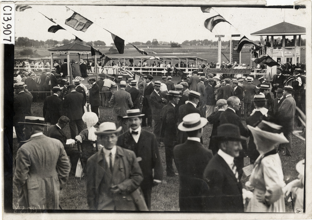 Favorite this☆ Spectators, 1908 Long Branch races Description: View of crowd of spectators during the 1908 automobile races at the Elkwood Park racetrack in Long Branch, New Jersey. Timers' stand and tally board in background. Handwritten on back: "Races and racing--Long Branch races, 1908." Details Resource ID: na014113 Subject: Automobile racing fans--New Jersey--Long Branch Racetracks (Automobile racing)--New Jersey--Long Branch Automobile racing--New Jersey--Long Branch Photographic prints Date Issued: 1908 Format: 1 photographic print ; 5 x 7 in. Member of: National Automotive History Collection Lazarnick Collection Filing Location: Races and racing--Long Branch races, 1908 #2 Negative Number: Negative #C13,907 Rights: Physical rights are retained by DPL. Copyright is retained in accordance with U.S. copyright laws.