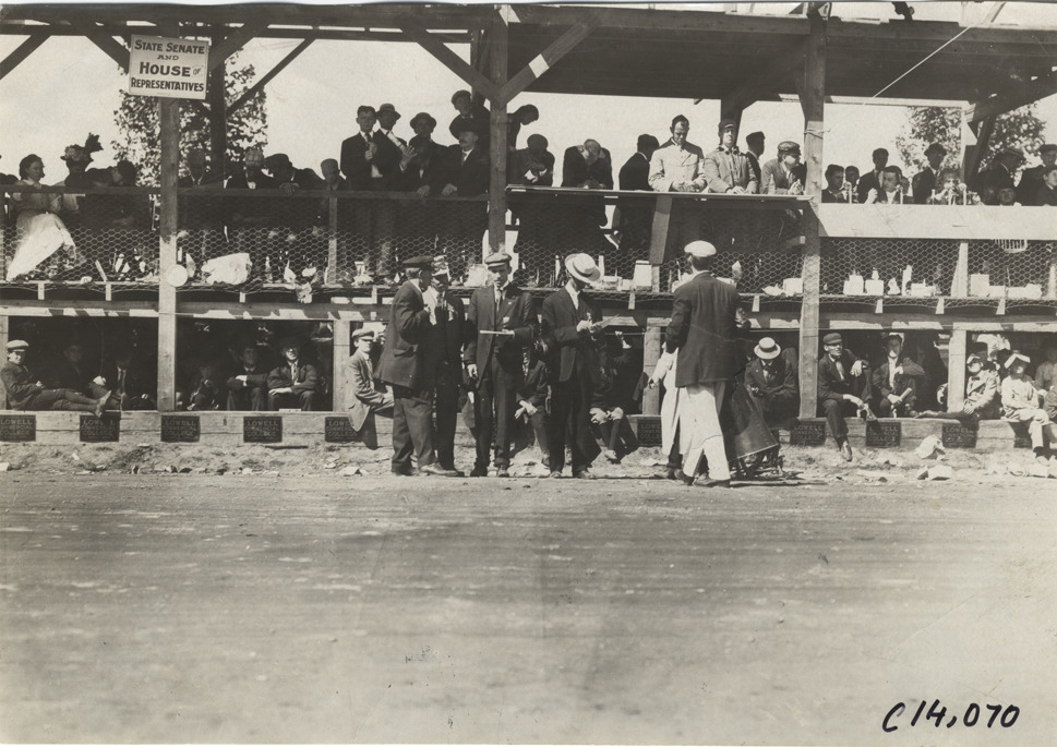 Favorite this☆ Officials in front of grandstand, 1908 Lowell road race Description: View of racing officials standing in front of grandstand during the 1908 Lowell road race in Lowell, Massachusetts. Handwritten on back: "Races and racing--Lowell road race, 1908." Details Resource ID: na014409 Subject: Sports officials--Massachusetts--Lowell Automobile racing--Massachusetts--Lowell Photographic prints Date Issued: 1908 Format: 1 photographic print ; 4.5 x 6.5 in. Member of: National Automotive History Collection Lazarnick Collection Filing Location: Races and racing--Lowell road race, 1908 #3 Negative Number: Negative #C14,070 Rights: Physical rights are retained by DPL. Copyright is retained in accordance with U.S. copyright laws.