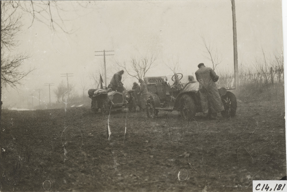 Favorite this☆ Motorists with automobiles on dirt road, 1908 New York to Paris Race Description: View of motorists with two cars on rural dirt road during 1908 New York to Paris Race. Handwritten on back: "Races and racing--New York to Paris, 1908." Details Resource ID: na014485 Subject: Automobiles New York to Paris Race, 1908 Photographic prints Date Issued: 1908 Format: 1 photographic print ; 4.5 x 6.75 in. Member of: National Automotive History Collection Lazarnick Collection Filing Location: Races and racing--New York to Paris Race, 1908 #3 Negative Number: Negative #C14,181 Rights: Physical rights are retained by DPL. Copyright is retained in accordance with U.S. copyright laws.