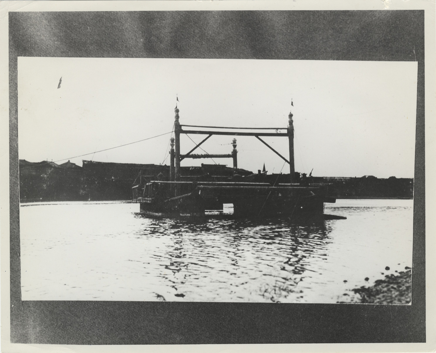 View of Siberian ferry. Handwritten on back: "Siberian ferry. Races and racing--New York to Paris, 1908."