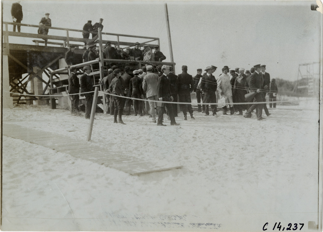 Spectators waiting for announcement of H.L. Bowden's record, 1905 Ormond-Daytona races