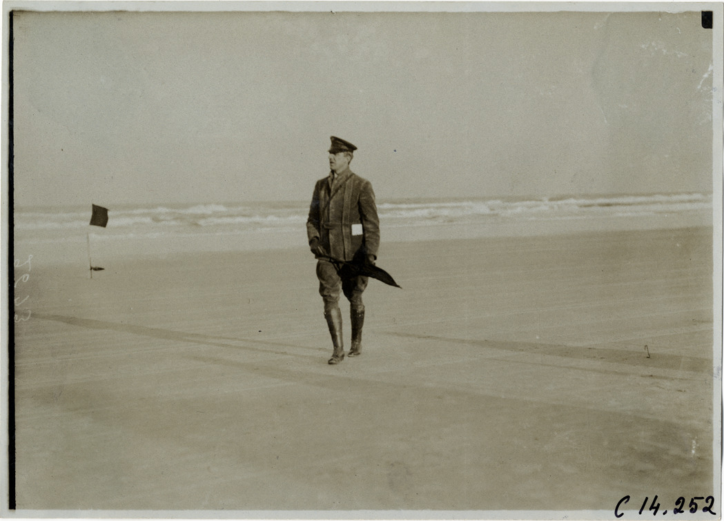 Favorite this☆ Official holding flag, 1905 Ormond-Daytona races Description: View of racing official on the beach, holding a flag, during the 1905 Ormond-Daytona races in Florida. Handwritten on back: "Races and racing--Ormond-Daytona, 1905." Details Resource ID: na014622 Subject: Sports officials--Florida Automobile racing--Florida Photographic prints Date Issued: 1905 Format: 1 photographic print ; 5 x 7 in. Member of: National Automotive History Collection Lazarnick Collection Filing Location: Races and racing--Ormond-Daytona races, 1905 #3 Negative Number: Negative #C14,252 Rights: Physical rights are retained by DPL. Copyright is retained in accordance with U.S. copyright laws.