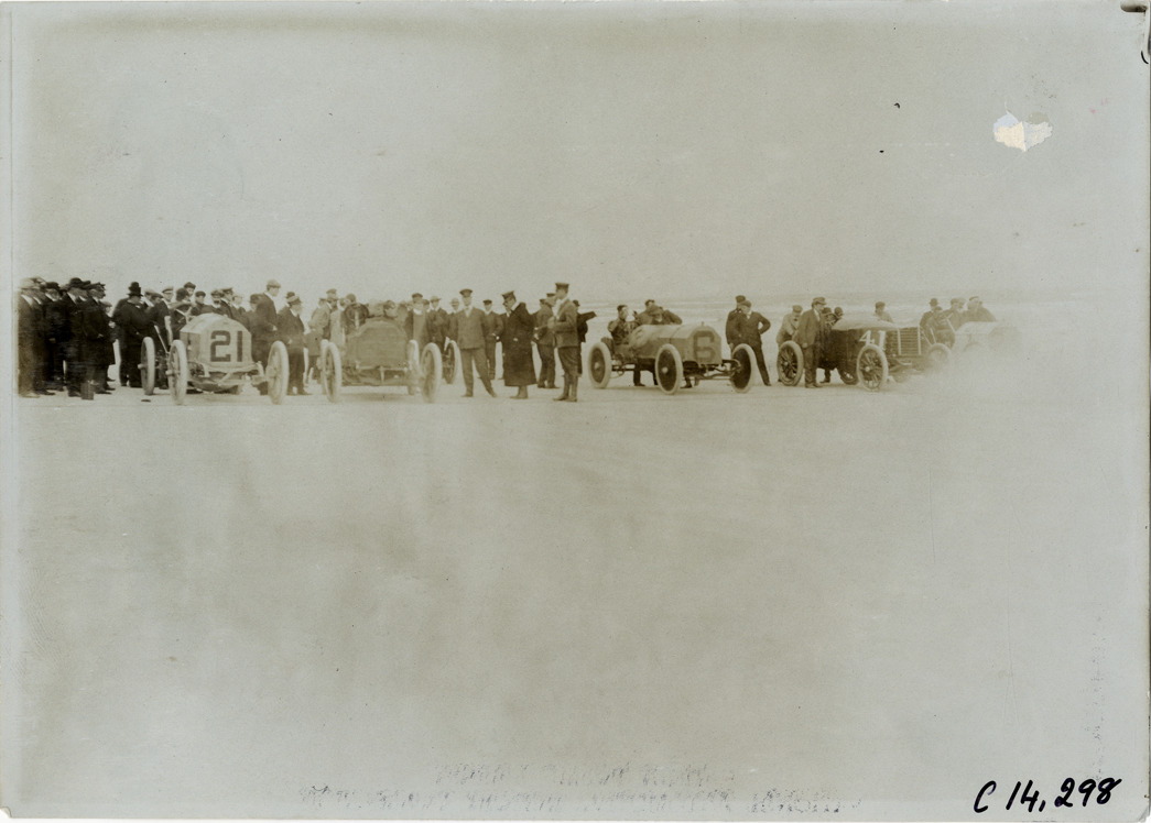Racecars at starting line, 1905 Ormond-Daytona races