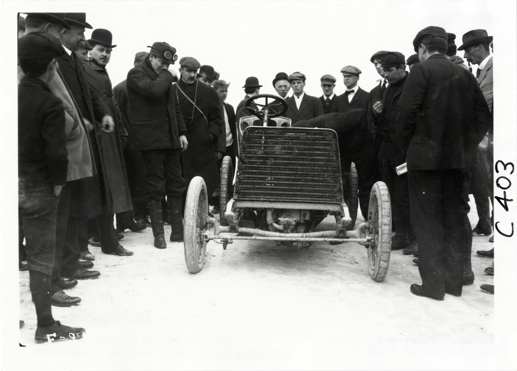 Favorite this☆ Crowd surrounding Darracq racecar, 1905 Ormond-Daytona races Description: View of crowd surrounding Darracq car on beach during the 1905 Ormond-Daytona races in Florida. Handwritten on back: "Darracq. Races and racing--Ormond-Daytona, 1905." Details Resource ID: na014700 Subject: Automobiles, Racing--Florida A. Darracq and Company Automobile racing--Florida Photographic prints Date Issued: 1905 Format: 1 photographic print ; 5 x 7 in. Member of: National Automotive History Collection Lazarnick Collection Filing Location: Races and racing--Ormond-Daytona races, 1905 #7 Negative Number: Negative #C403 Rights: Physical rights are retained by DPL. Copyright is retained in accordance with U.S. copyright laws.