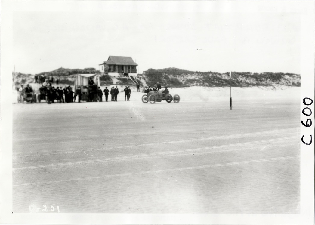 Paul Sartori driving Fiat racecar, 1905 Ormond-Daytona races